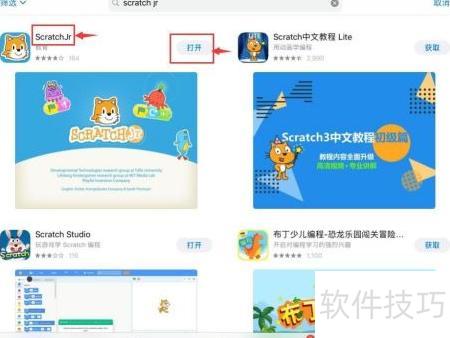 - 找到Scratch Jr后点击右上角获取,成功后点击打开即可。
