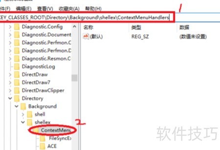 - 将以下路径复制到输入框中:HKEY_CLASSES_ROOTDirectoryBackgroundshellexContextMenuHandlers,然后按下回车键确认操作。