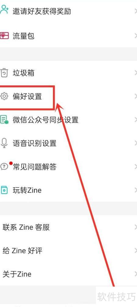 - 打开Zine图文笔记应用,进入偏好设置选项。
