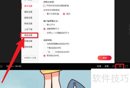 - 点击右下角设置,进入新窗口左侧的高级选项。