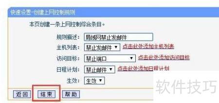 5、 所示,需设置相关规则:规则描述可随意填写,例如局域网禁止发送邮件,完成后点击结束即可。