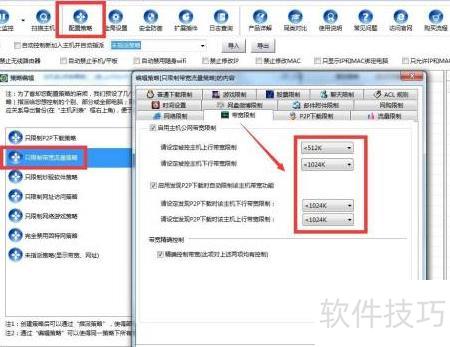 除了常规的方法外,还可以借助专业网络行为管理软件实现局域网内电脑上网行为的全面管控及对网速的限制。首先,在系统主界面打开后,选择新建策略,并进入策略编辑页面。接着,切换至宽带限制选项卡,可以设定上行和下行带宽参数来有效地控制每台计算机的网络使用速率。这样不仅可以保障网络资源的合理分配与高效利用,还能防止滥用或不必要的网络消耗,从而营造出更有序、高效的上网环境。
