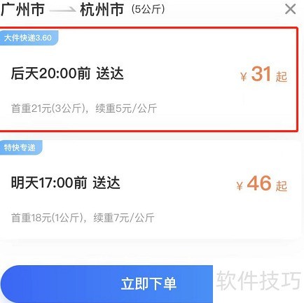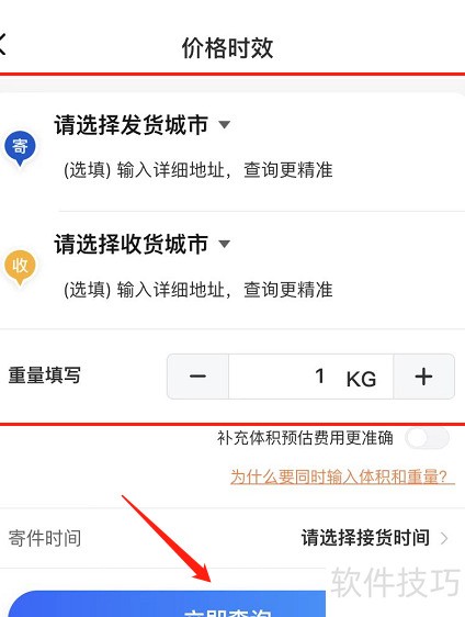 - 选择发货地、收货地及货物重量后,点击立即查询。