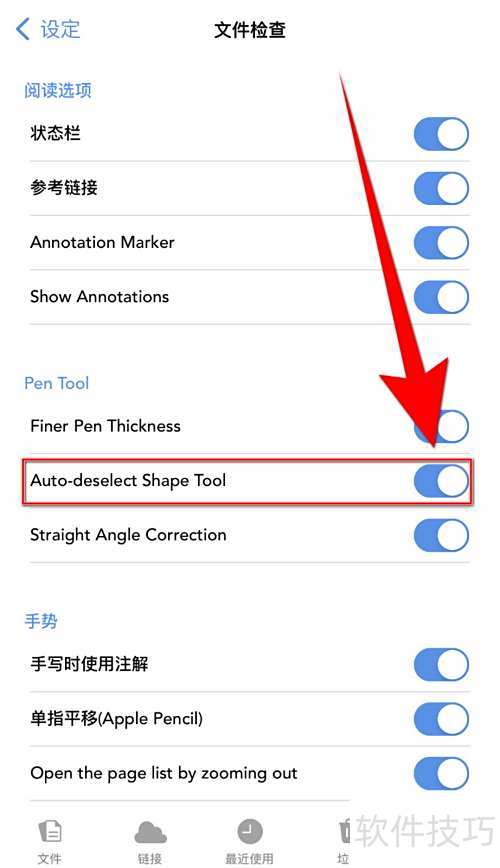 - 当选项后的圆点显示为灰色时,表示已成功关闭Flexcil的自动取消形状工具功能。