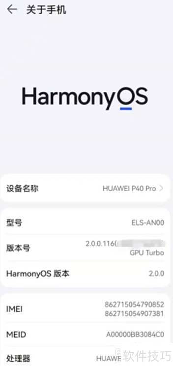 - 设置完成后返回,查看手机信息显示系统已更新为鸿蒙版本。