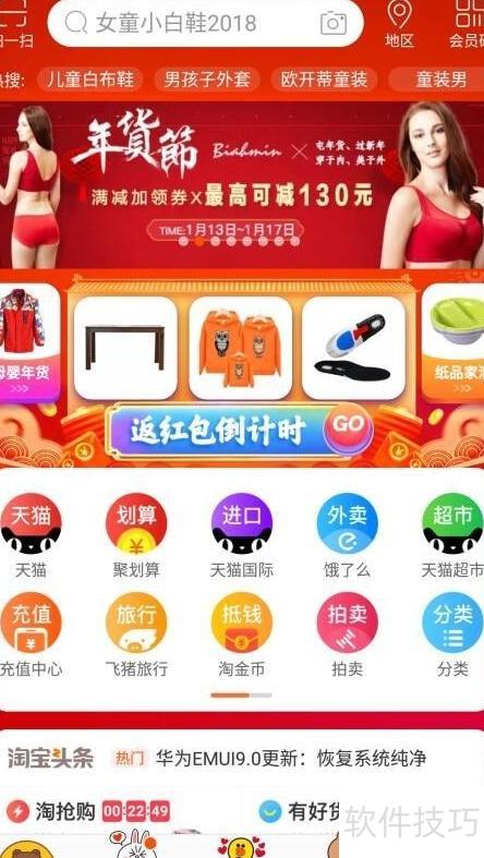 - 打开手机淘宝应用,向上滑动界面即可浏览和查找商品。