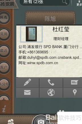 8、 可对名片图片进行多种操作,包括拨打电话、发送短信、电子邮件、访问公司官网及定位公司位置。