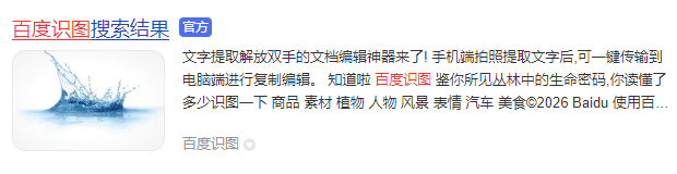 - 以图搜图:上传图片或粘贴图片链接,查找相似图、高清原图、图片来源与传播路径。