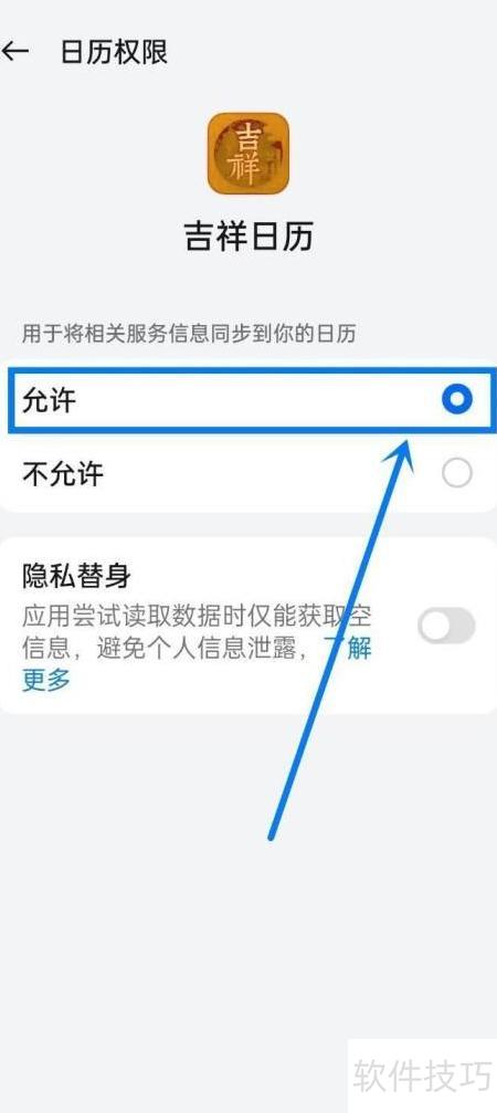 - 进入隐私设置,开启允许吉祥日历访问日历信息的选项。