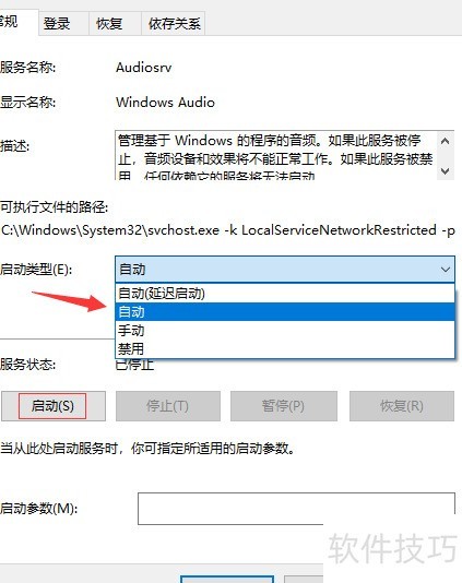 在常规选项卡中选择“自动”,点击启动按钮,服务启动后再点击“确定”完成设置。