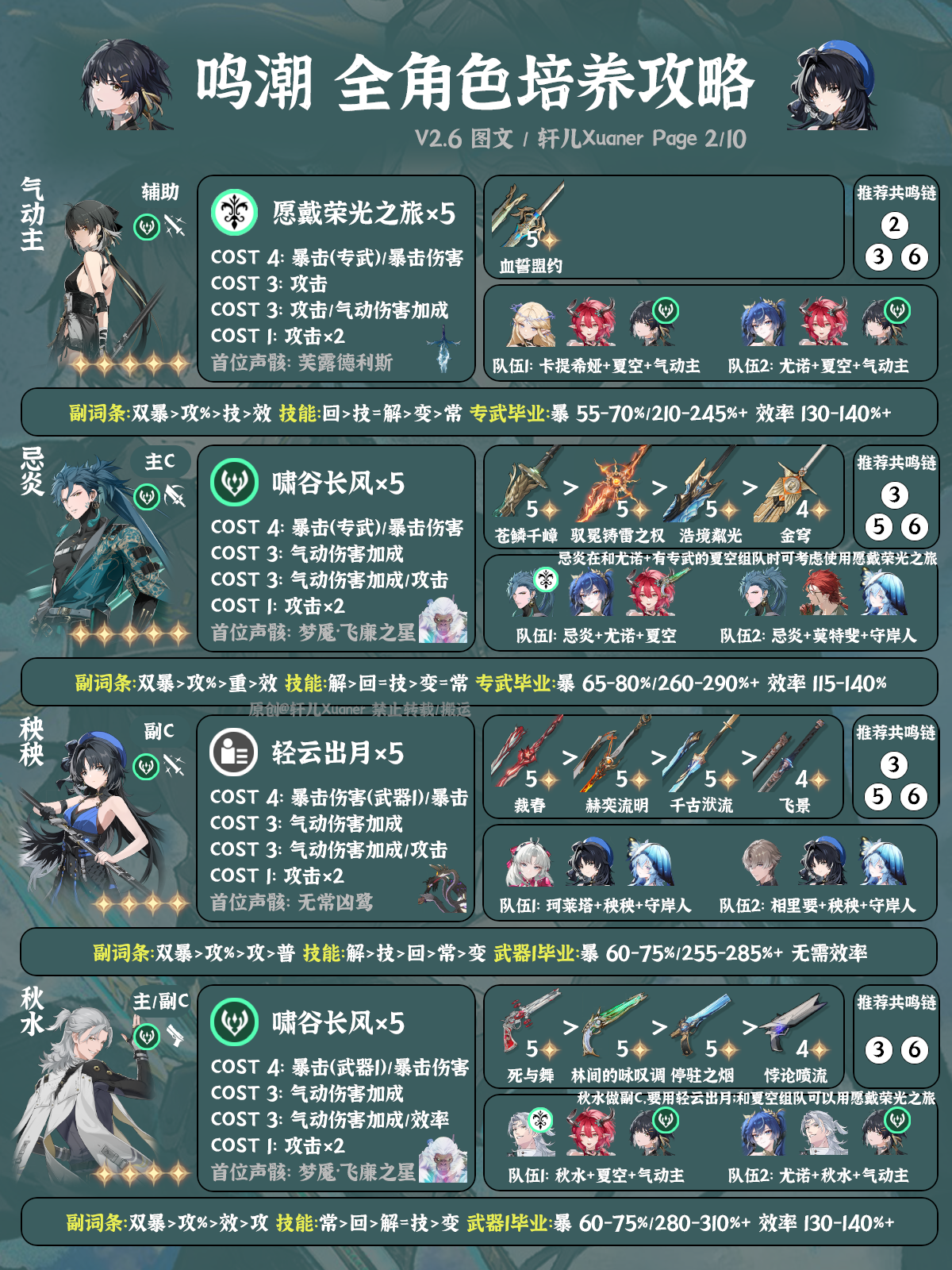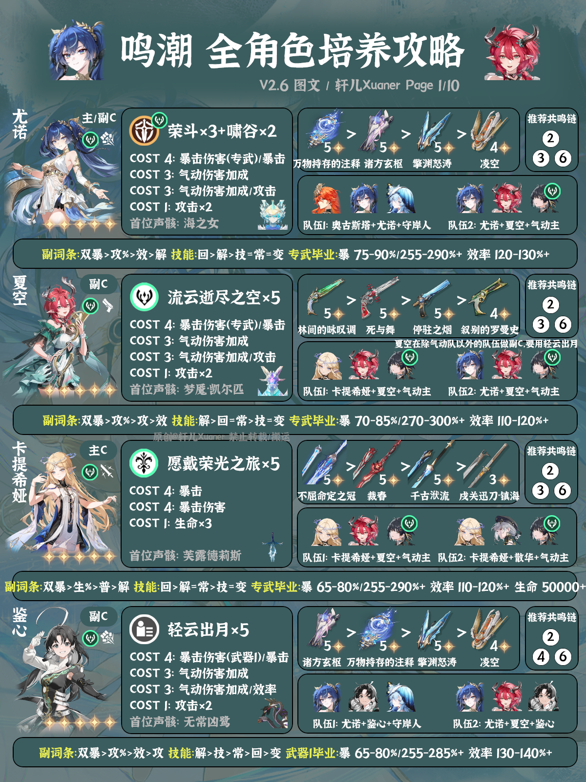 以上就是多特游戏为大家带来的鸣潮2.6版本全角色养成攻略解答,大家都了解了吗?还想要了解更多的内容那就请继续关注多特游戏吧。