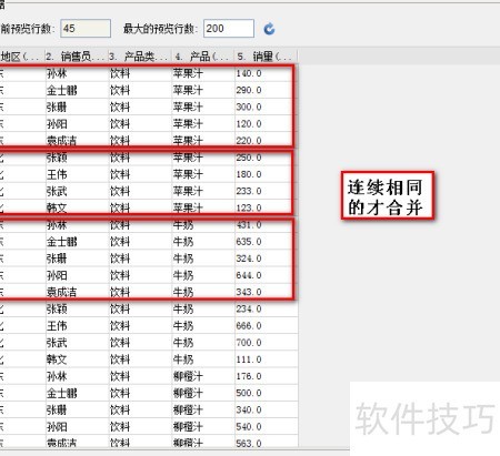 - 将地区字段调整为按相邻连续分组方式修改数据设置