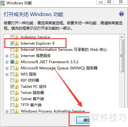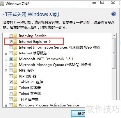 在Windows功能启用/禁用界面中,IE选项可能会显示为Internet Explorer 操作方法一致:开启或关闭只需单击勾选或取消;系统自动切换不会影响设置效果。简化操作,一步到位。