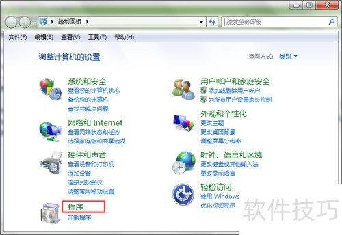在控制面板中切换到类别模式,浏览到底部后点击程序设置,注意不要误删任何程序。