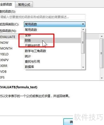 - 选择函数分类中的财务类别并点击。