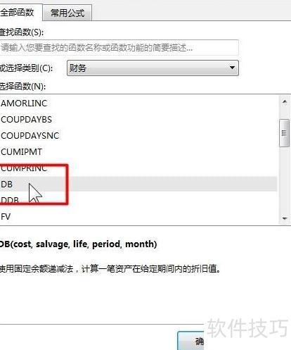 - 接着在公式-财务中选择DB函数。