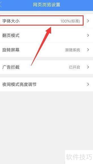 - 在网页浏览设置界面,定位到字体大小选项。