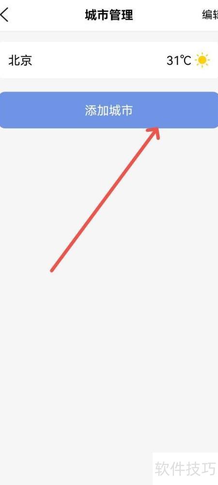 - 进入城市管理页面,点击添加城市按钮即可新增天气城市。