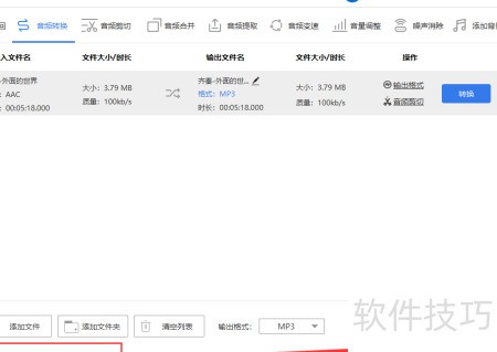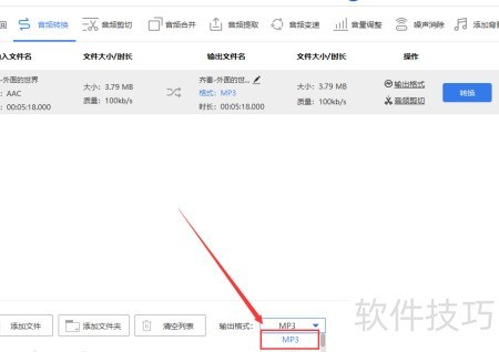- 由于需将aac转为mp3格式,我们在输出格式选项中查找并点击选择即可完成设置。