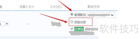 - 进入支付页面后,请选择货到付款选项,切勿遗漏,因默认设置为普通配送。