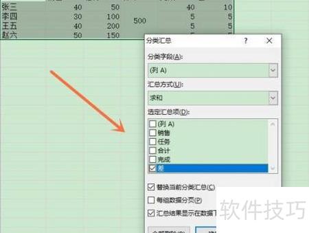 - 选择分类字段与汇总项,设定汇总方式及位置后,确认即可完成操作。
