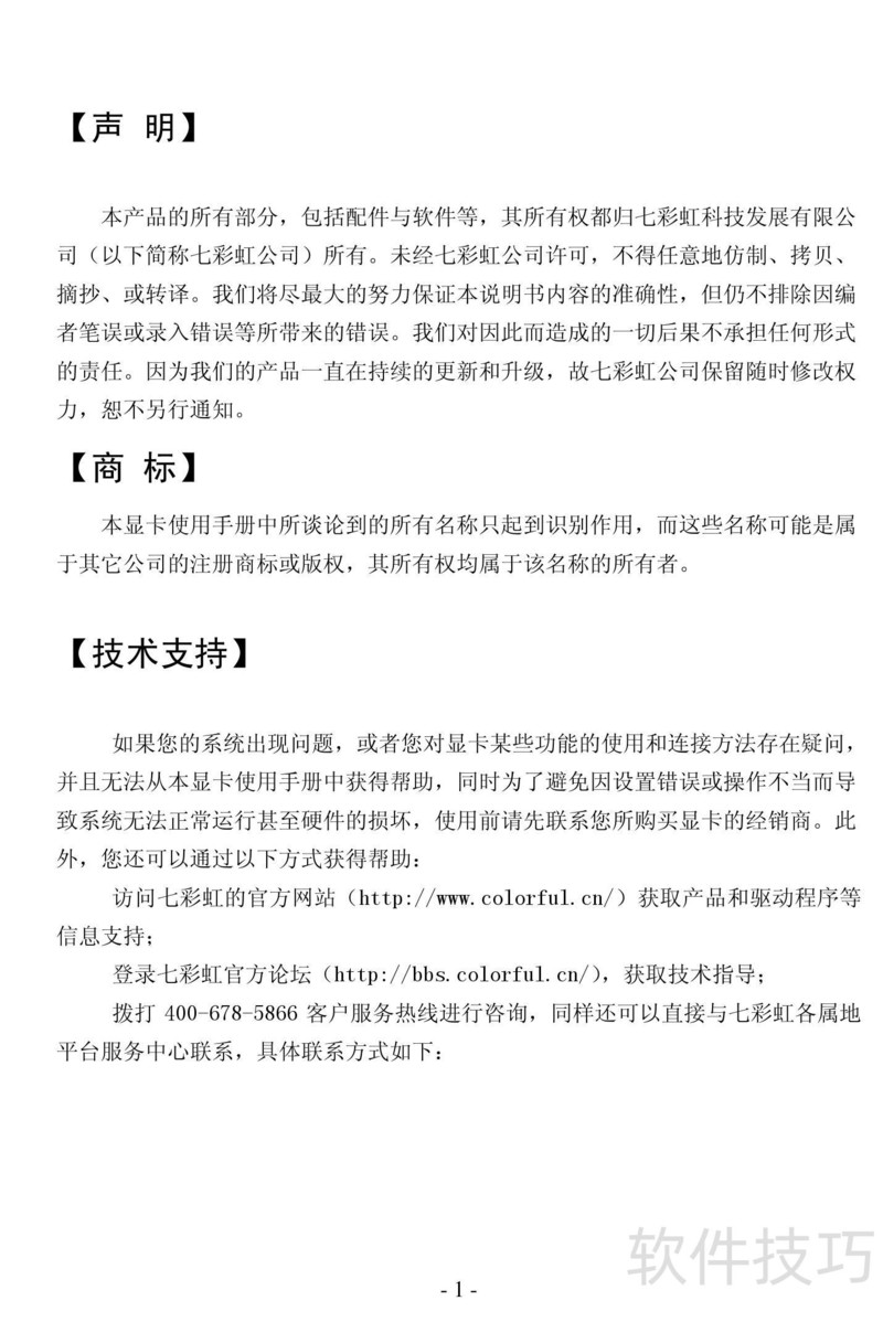 七彩虹逸彩T-GDCF黄金版 A明书详细阐述了产品使用方法,并提供了常见问题解决方案,旨在帮助用户正确使用与维护设备。