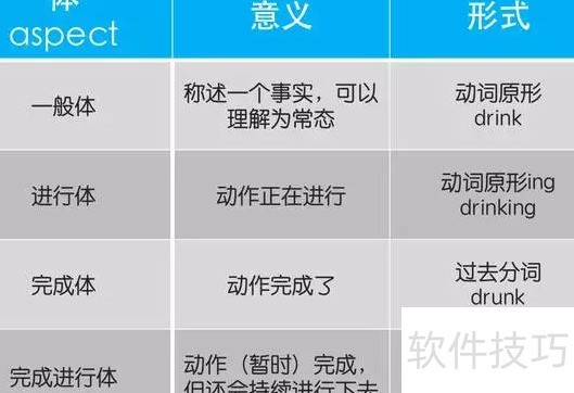 表示动作的状态,与时间无关,仅反映动作自身阶段或情况。