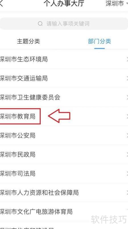 - 接着点击深圳市教育局选项进入下一步。
