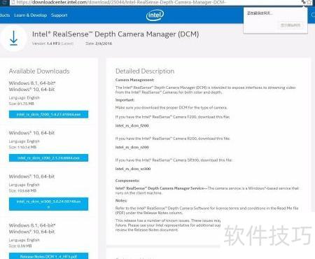- 下载Intel RealSense F200设备管理程序v1.4版本,运行安装程序后按提示连续点击下一步完成安装。