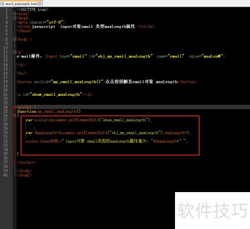 - 新建一个名为 email_maxlength 的 HTML 文件。