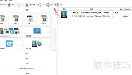 - 点击开始,转换完成后视频即为FLV格式。