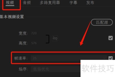 在Premiere中调整视频尺寸与帧率的方法如下