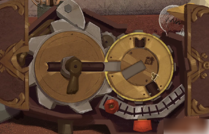 如果玩家直接按下下方的红色小方块并抽出长木棍,随后会发现把手掉落下来。此时,请务必将把手安装到八音盒中,并点击按钮使下面两块成功放置进凹槽的木块恢复至初始状态。最后别忘了合上八音盒!