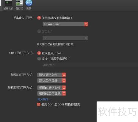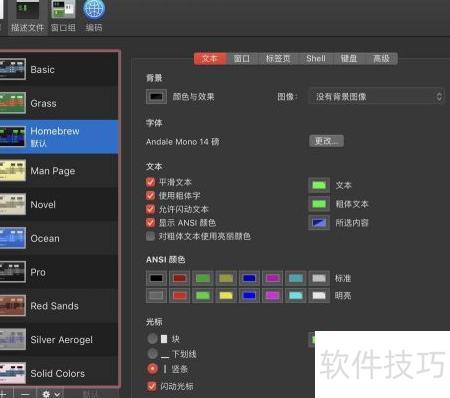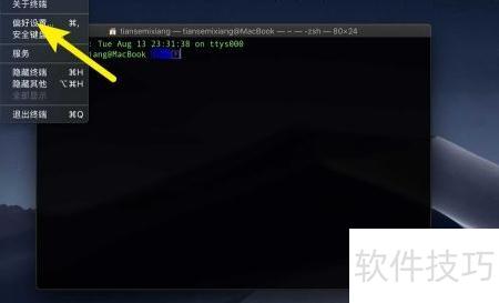 在Mac中开启终端,点击顶部菜单,终端选项下选择偏好设置以更改设置。