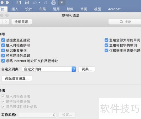 - 设置字典后确认拼写与语法选项