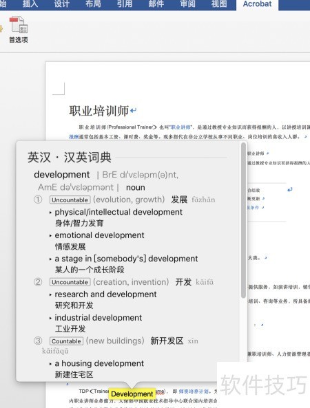 在Word中启用Mac内置字典,轻松实现划词翻译功能。