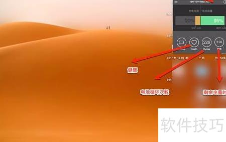 点击电池图标后会显示详细信息,其中绿色部分表示当前可充电量,图中为,代表电池实际能充入的最大容量比例。右侧的数字显示剩余电量为。下方依次列出电池循环次数、健康状况及预计使用时间。这些数据有助于判断是否需要更换电池。通常情况下,当电池最大充电量降至左右时,建议更换,因为此时续航能力大幅下降,难以满足外出使用需求。
