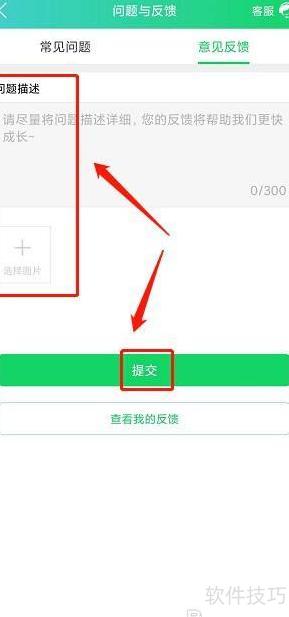打开反馈页面,填写问题详情并上传图片,最后点击提交按钮。