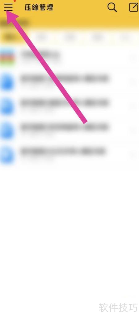 打开解压专家应用,点击左上角三条横线图标。