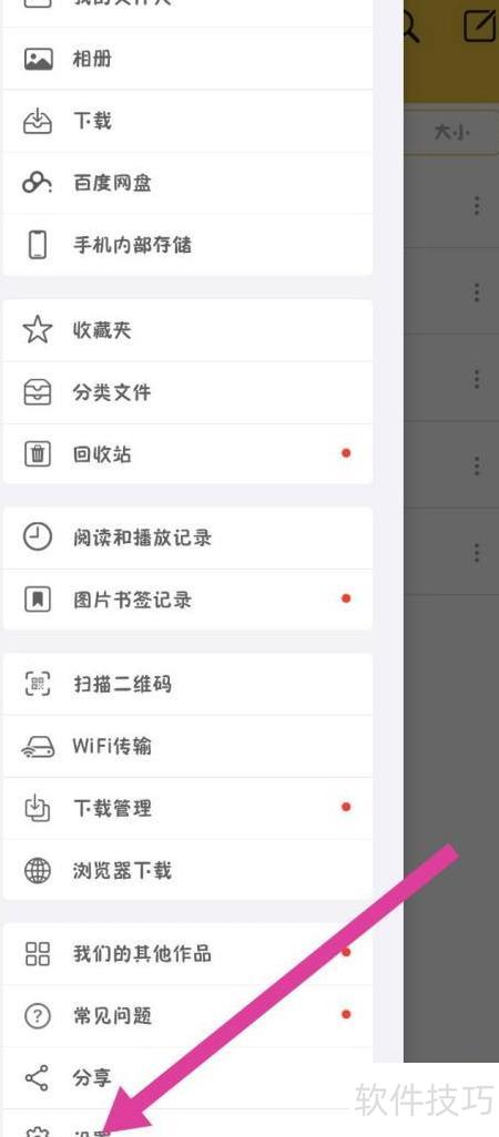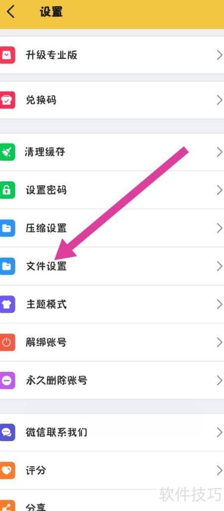 进入设置,选择文件设置选项。