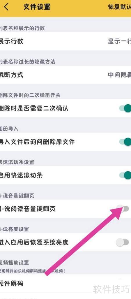 进入文件设置,关闭小说阅读音量键翻页功能。