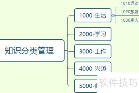 将知识按类别命名划分,如生活、学习、工作、兴趣、归档,知识点依序归入对应分类中。