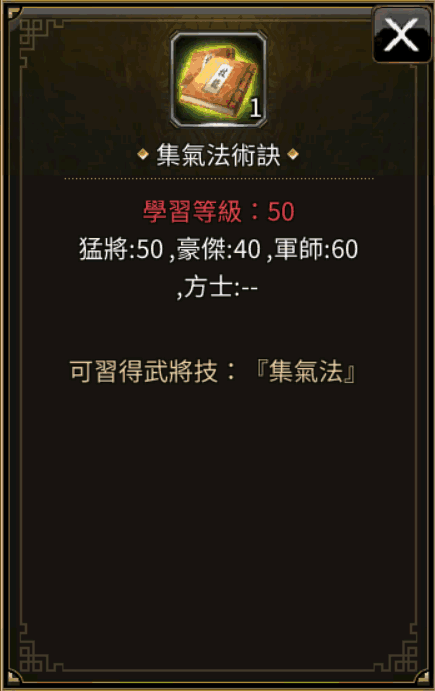 稀有掉落:集气法术诀、虎颚腕、南蛮盾、破城m术诀、烈风秘笈、兽鬼召唤术诀、全阵形精通书、避强化法、羊毛围巾