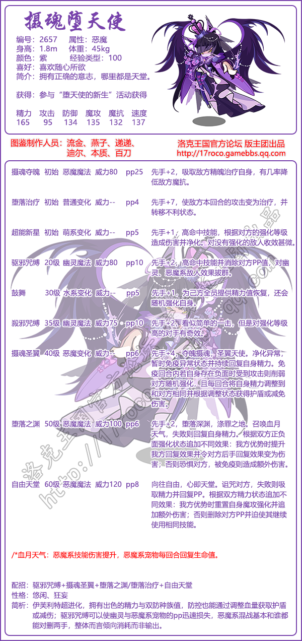 洛克王国摄魂堕天使技能搭配内容及配图由入驻作者撰写或者入驻合作网站授权转载。文章观点仅代表作者本人,不代表本站立场。洛克王国摄魂堕天使技能搭配文章及其配图仅供学习分享之用,如有内容图片侵权或者其他问题,请联系本站作侵删。