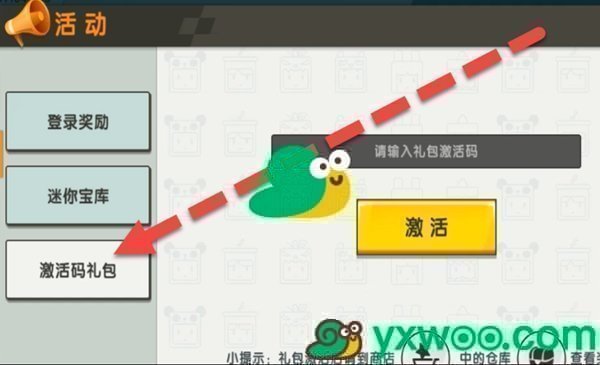 3、最后(zuihou)點击激活码礼包,输(shu)入上方为大家准备(zhunbei)的激活码點击激活即(ji)可(ke);